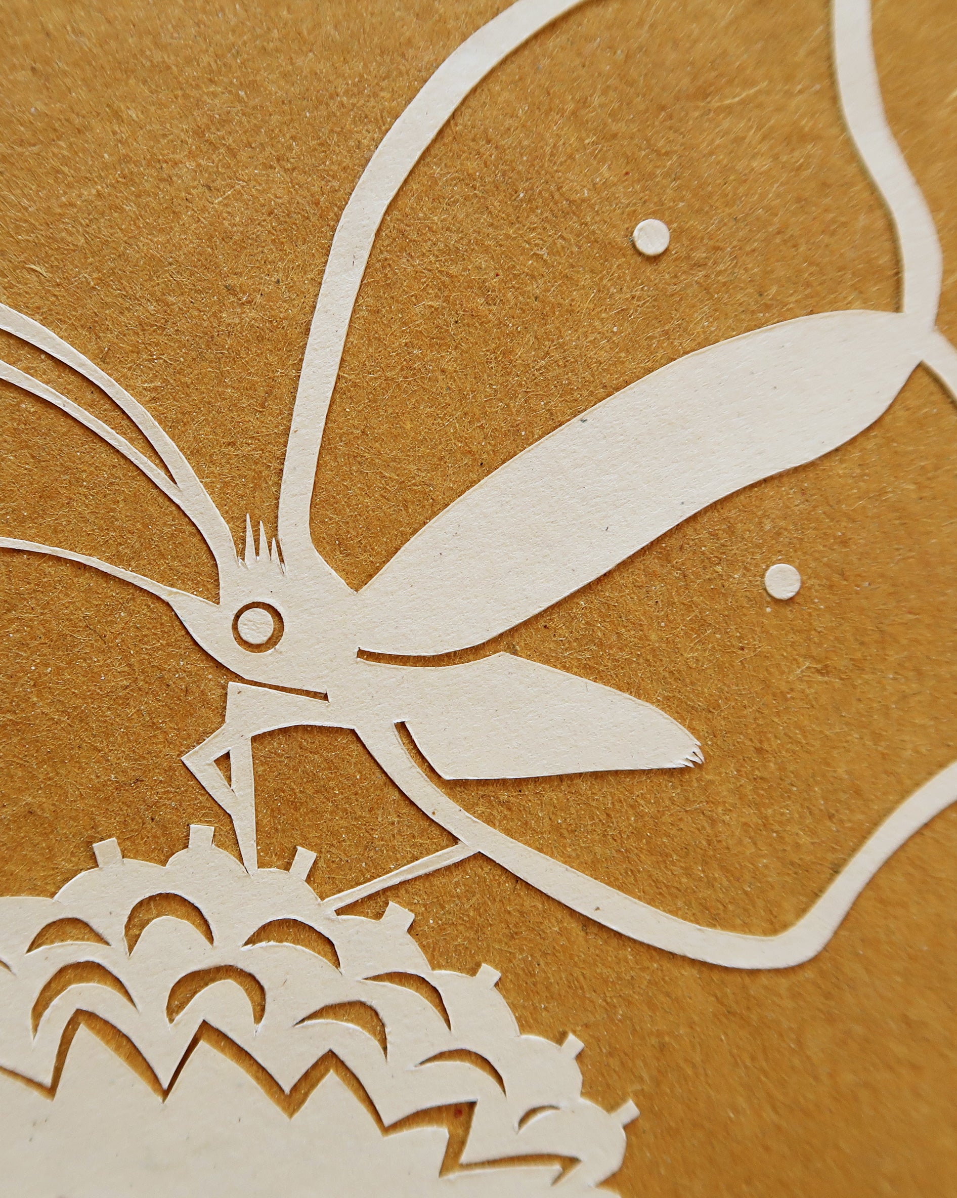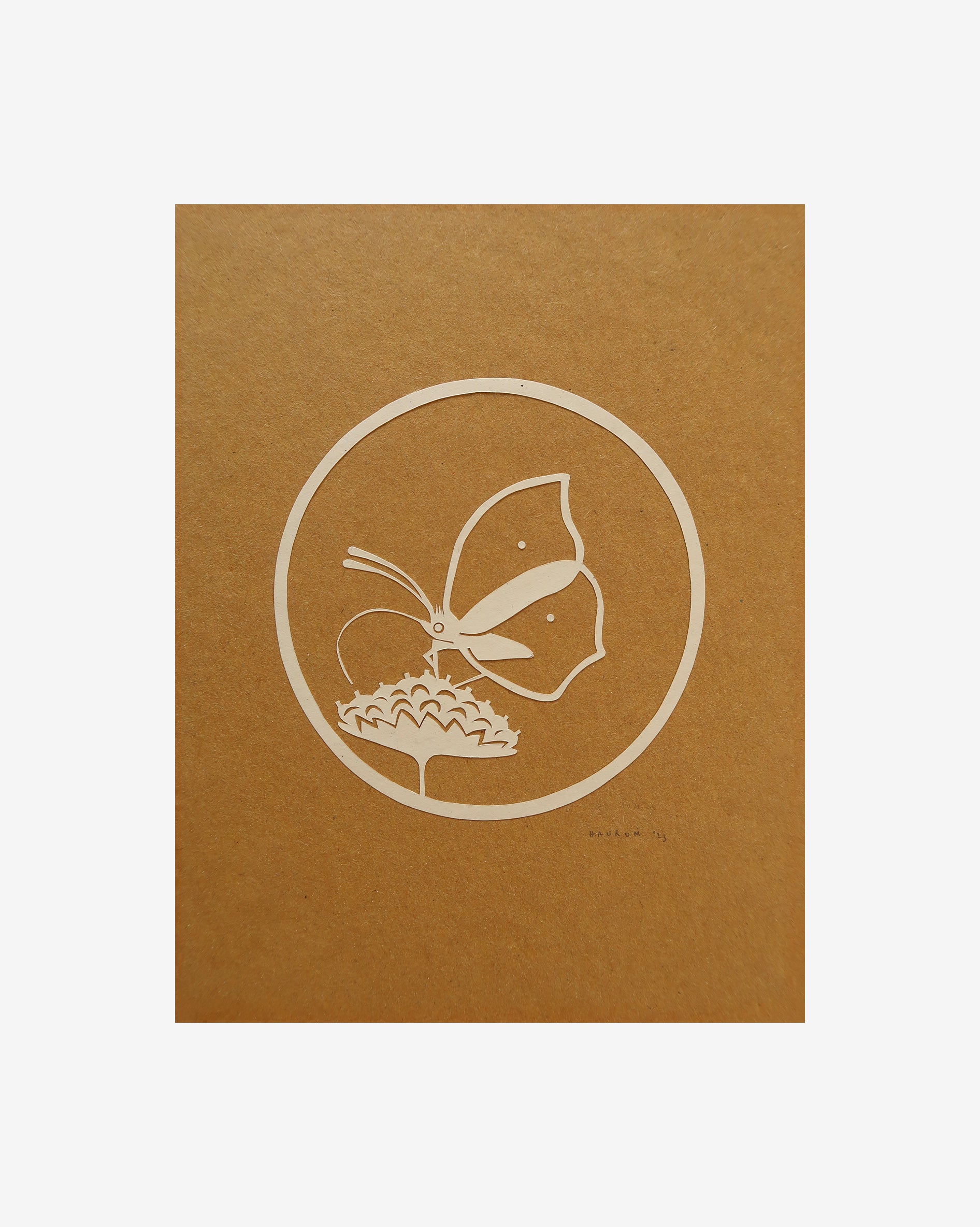 Citronsommerfuglen her på papirklippet sidder på den fantastiske planteart blåhat (Knautia arvensis), som er en eftertragtet kilde til nektar og pollen for mange forskellige arter af insekter.